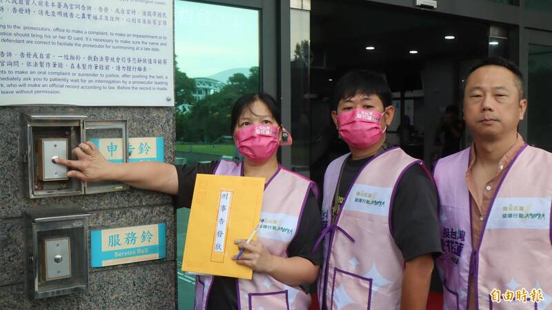 吉安鄉長游淑貞農會宣講反罷免被花蓮罷免傅崐萁的團體「微光花蓮」到地檢署告發涉嫌違反選罷法。(記者王錦義攝)