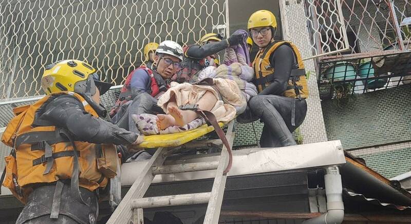 救災人員將受困者從樓上救下來。(圖由宜縣消防局提供)