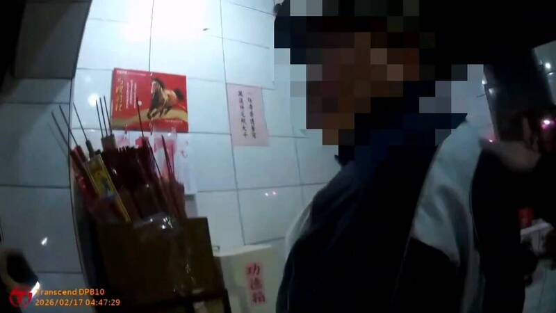 樹林尾伯公廟清晨遭小偷,警方趕到現場捉賊。(警方提供)