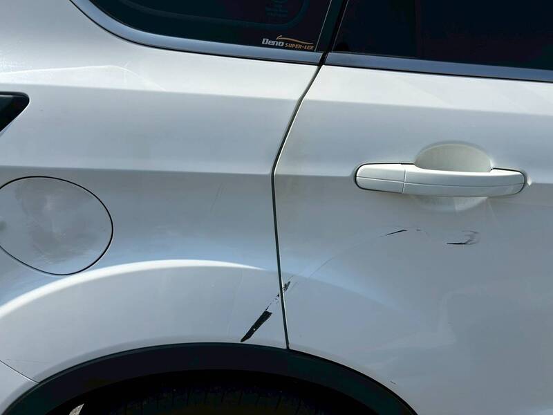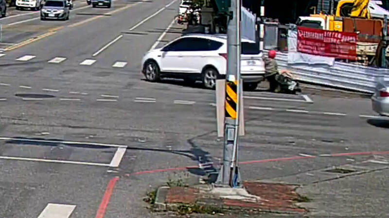 花蓮縣吉安鄉自強路與和平路口今天上午發生一起汽車右轉與機車擦撞的意外。(民眾提供)
