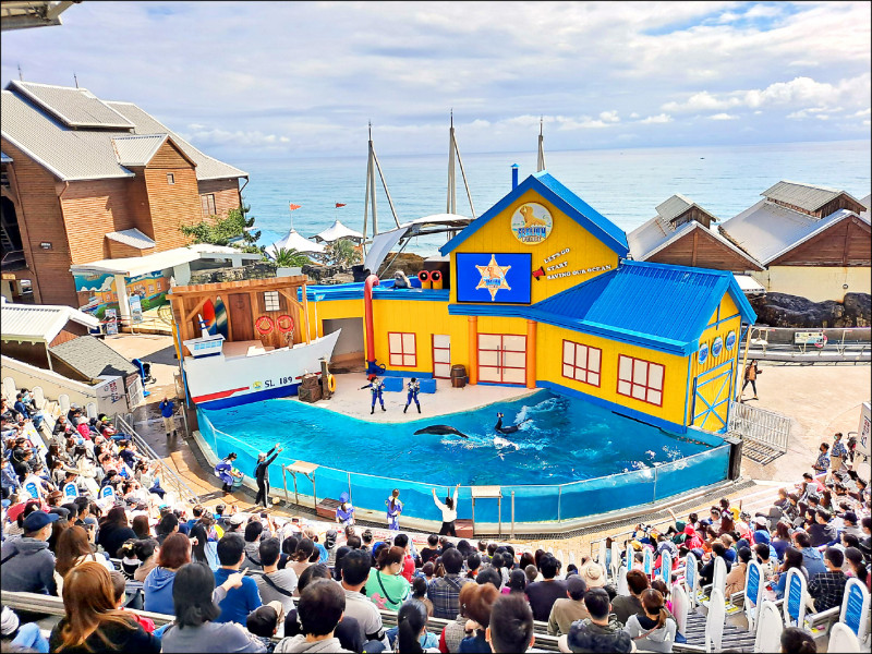 遠雄海洋公園因連假首日天氣晴朗、氣溫舒適,湧入超過三千五百人次。 (遠雄海洋公園提供)