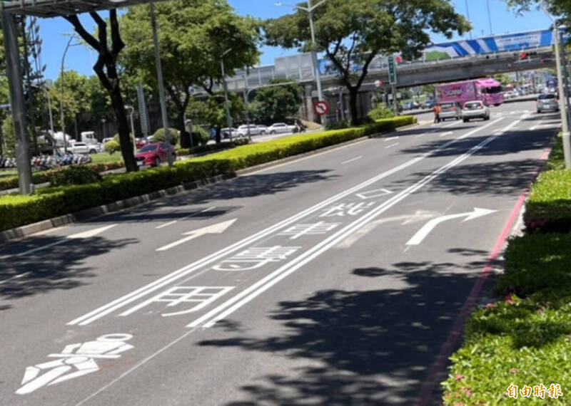 除提升東向車流紓解效率,原來東向延長秒數,更可重新分配給其他行向,減少停紅燈機會;此外,交通局也同時重新配置車道,由內至外為兩個直行車道、一個機車專用道,以及一個右轉車道,已於今(23日)完成施工調整。