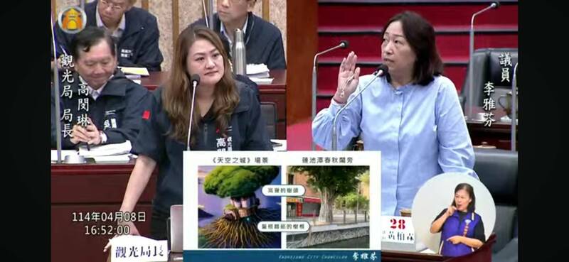 高閔琳說明,天空之城樹牽涉蓮潭最後一哩路重新整治計畫,觀光局曾與屏科大老師討論過、對於這棵榕樹保留或保護方向,評估護岸工程完成後仍會保留,但可能看不到如今完整樣貌。
