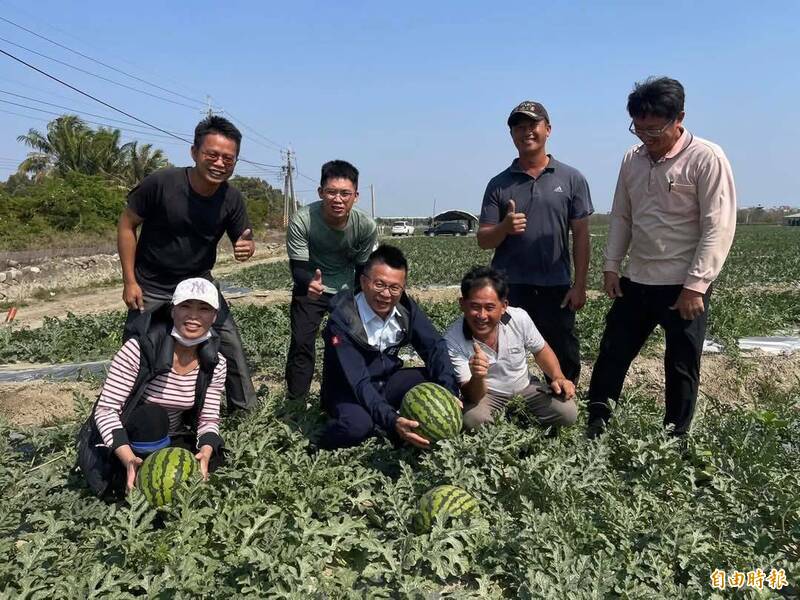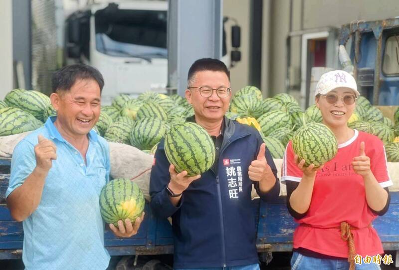 高雄瓜豐收上市,農業局長姚志旺號召大家一起吃瓜。(記者陳文嬋攝)
