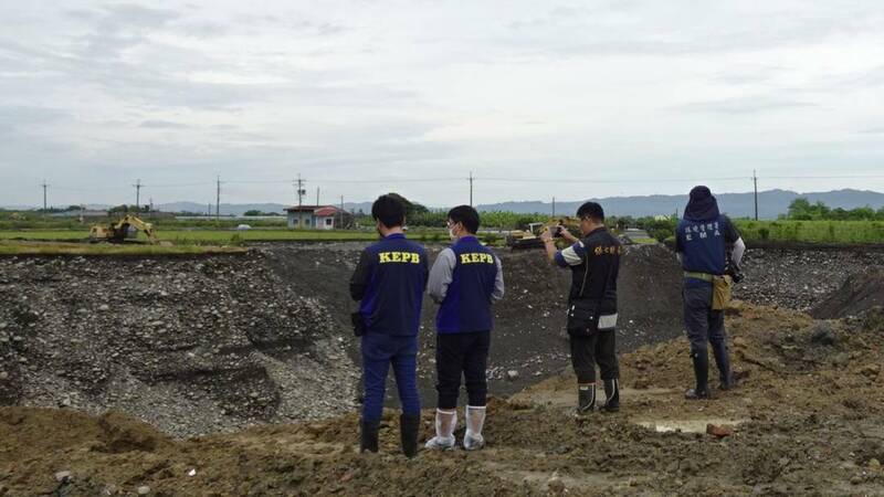 橋頭地檢署日前獲悉美濃區成功段及新吉洋段多處農地及國有地,遭不法集團大範圍盜採土石後,又回填營建廢棄物等違法情事,檢察長張春暉指示主任檢察官陳竹君等人主動分案調查,會同市警局刑警大隊、保七總隊等追查,發現不法集團開挖農地或國有地盜採土石,再將營建廢棄物或廢土回填到巨大坑洞中。