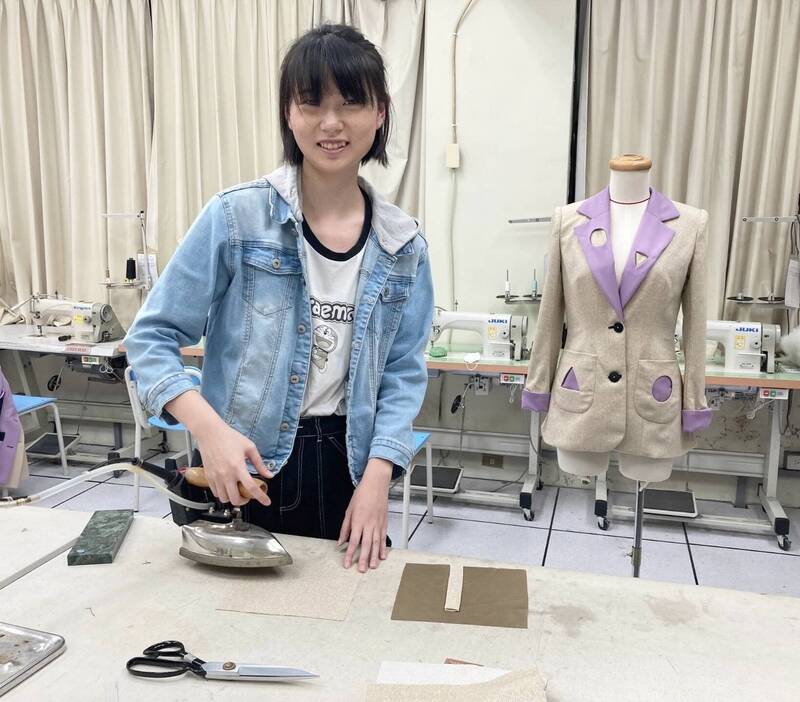 三民家商校友蕭妤珊勇奪青年組「服裝創作」金牌。(高雄市教育局提供)