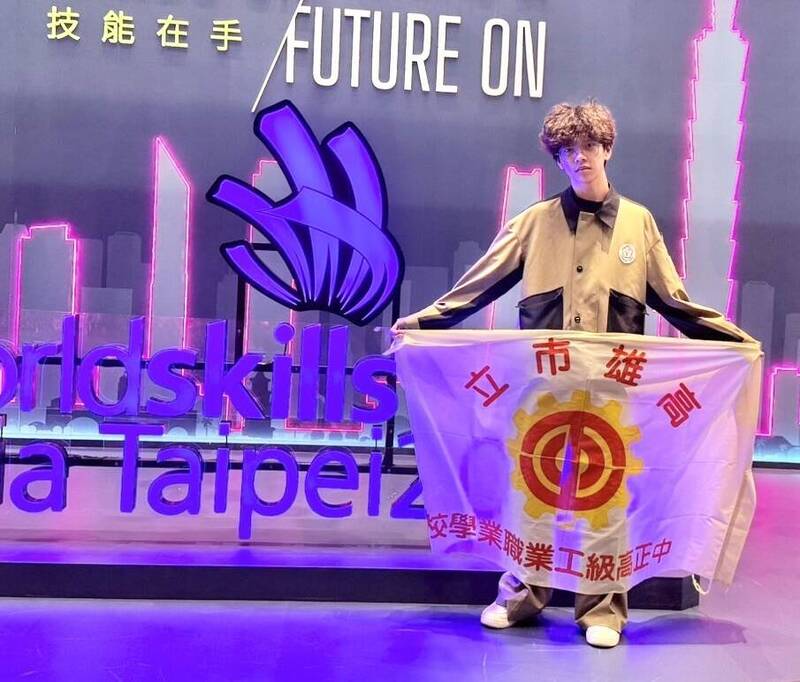 中正高工學生薛湘嶧榮獲青少年組電子職類金牌。(高雄市教育局提供)
