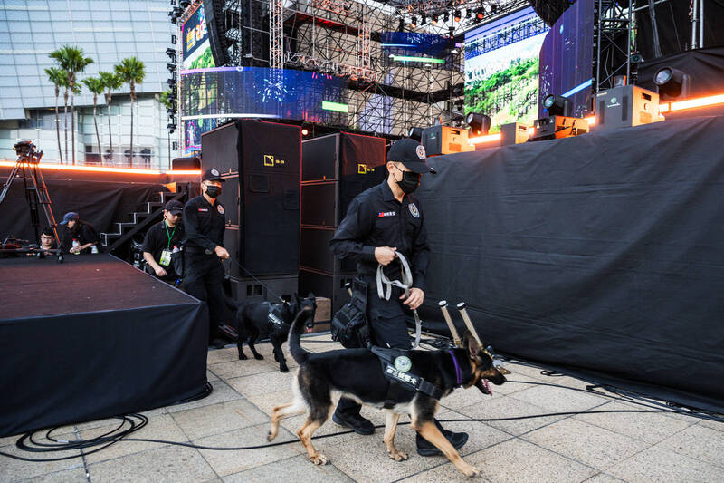 高市警方動員警犬到跨年現場巡守。(市府提供)