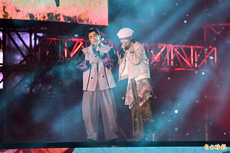 鼓鼓呂思緯與陳漢典和聲「當我變成我們 We Are One」。(記者李惠洲攝)