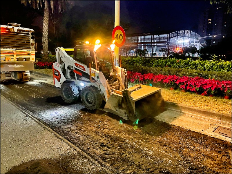 高雄市中山三、四路利用夜間進行路面改善工程。(記者葛祐豪翻攝)