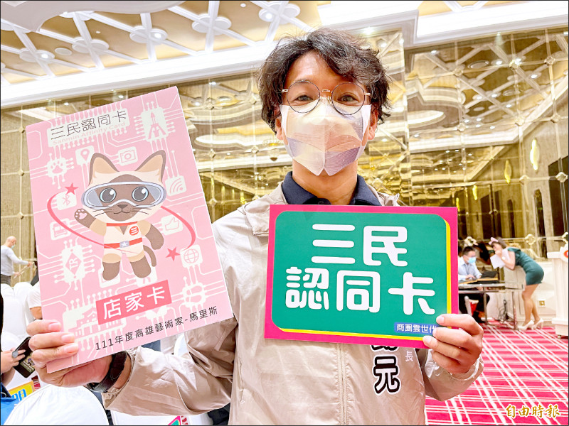 三民認同卡找來插畫家兼三民區豐裕里里長謝錫元設計主視覺,以貓為主角設計了具科技感的造型。王鐘賢說,實體的認同卡僅發行一萬張限量紀念卡,包括一千張的公益卡和二千張關懷卡,認同卡將透過合約店家發送給民眾,也可透過APP加入會員,每月消費滿卅次還可抽獎。