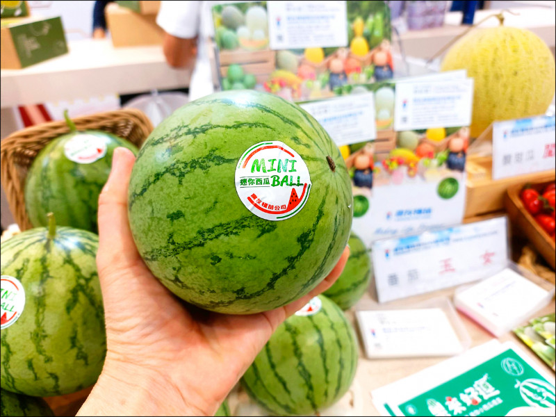 「二○二三年台北國際食品展」昨天登場,來自高雄的「Miniball迷你小西瓜」首度在展場發表,如同一顆綠色壘球般大小,一手就能掌握,且皮薄肉多清甜可口,引起國內外買家熱烈討論。
