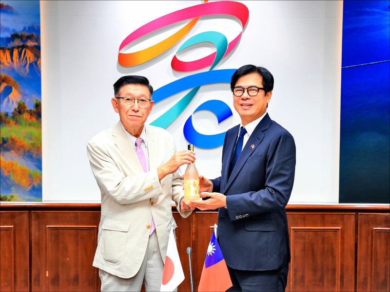 日本秋田縣知事佐竹敬久(左)拜會高雄市長陳其邁。(高市府提供)