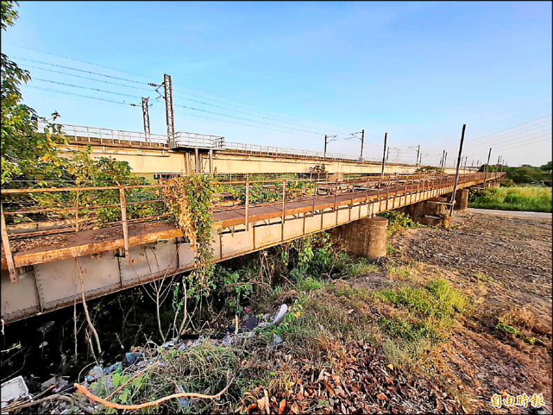 《二層行溪舊鐵路橋》為日治時期西部縱貫鐵路雙軌化工程產物,為全台現存唯一複線鐵橋,更為彌足珍貴。(記者蘇福男攝)