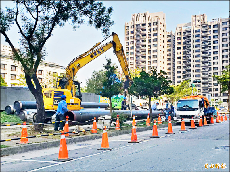 高捷黃線Y16站進行改管工程。(記者陳文嬋攝)