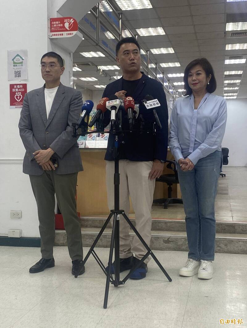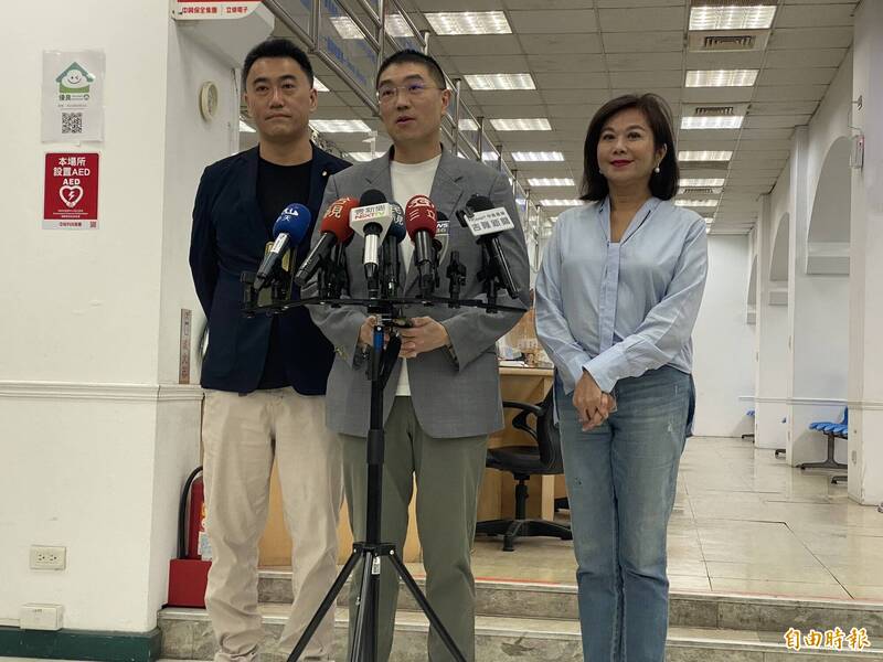 基隆市長謝國樑(中)指出,種種跡象都顯示民進黨積極的介入罷免選戰。 (記者俞肇福攝)