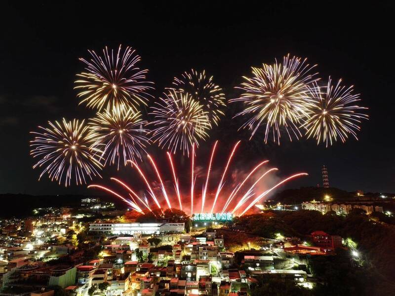 七夕無人機煙火秀今晚在虎仔KEELUNG地標上空璀璨登場。(基隆市政府提供)