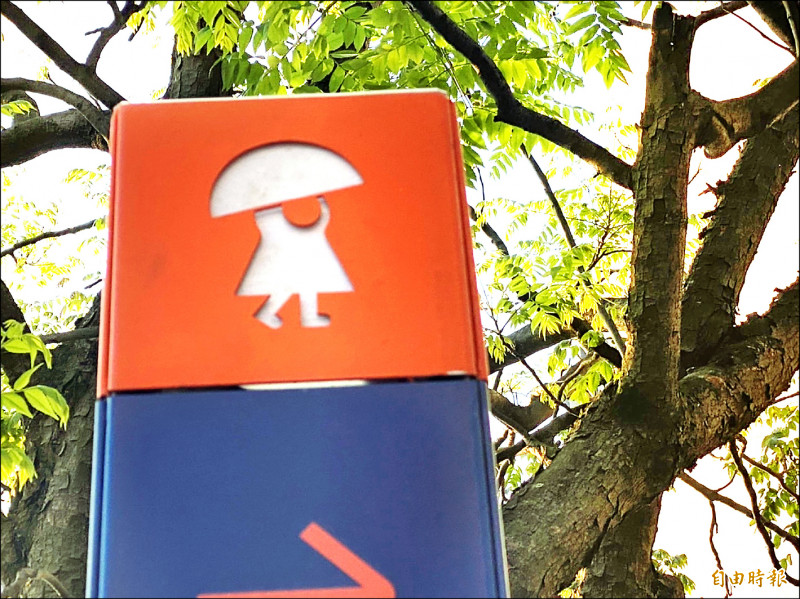 民眾只要與位於各景點的任一撐傘小孩合照並上傳,分享臉書有機會獲得文創禮。(記者俞肇福攝)