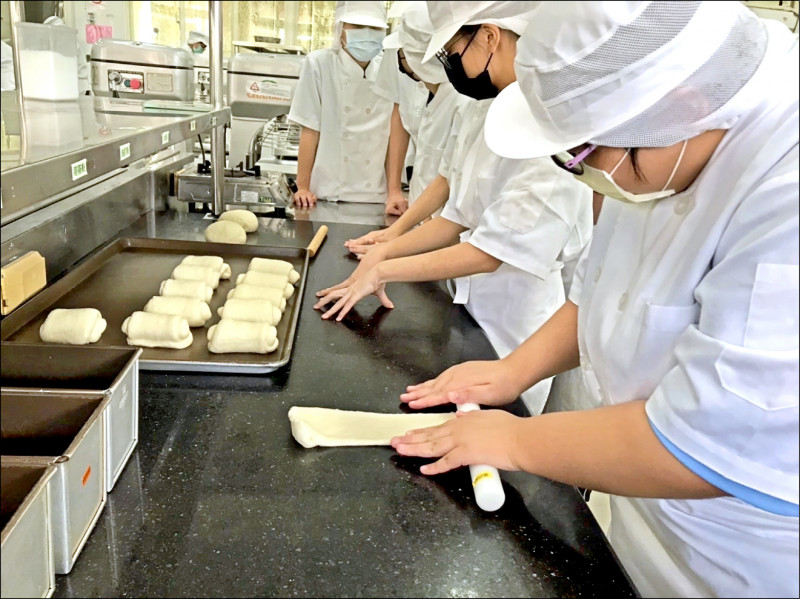 國立海大附中烘焙科視障生白卉涵,「以手當眼」學習麵包烘焙技能,勤學不輟,終於如願以償取得麵包烘焙丙級技術士證照。(海大附中提供)