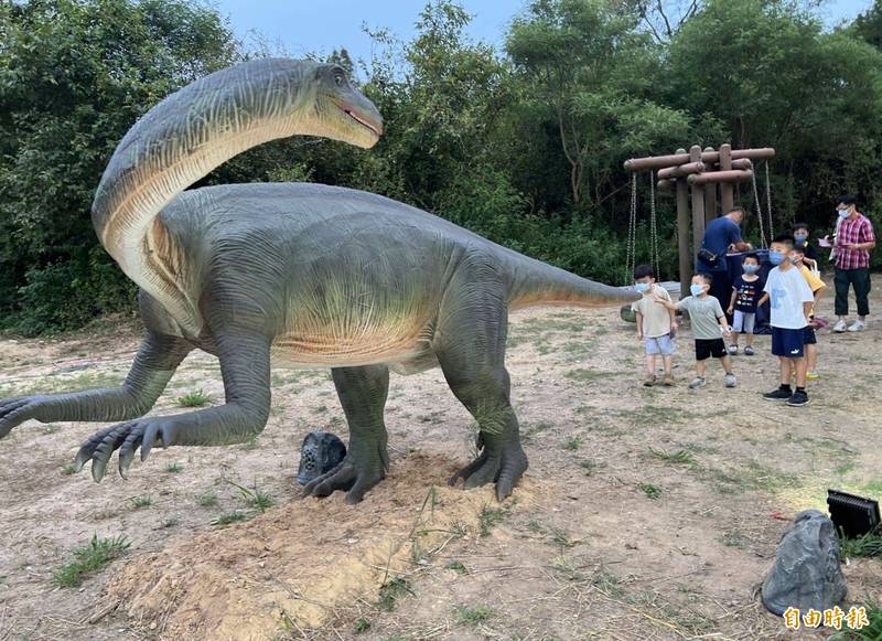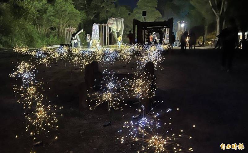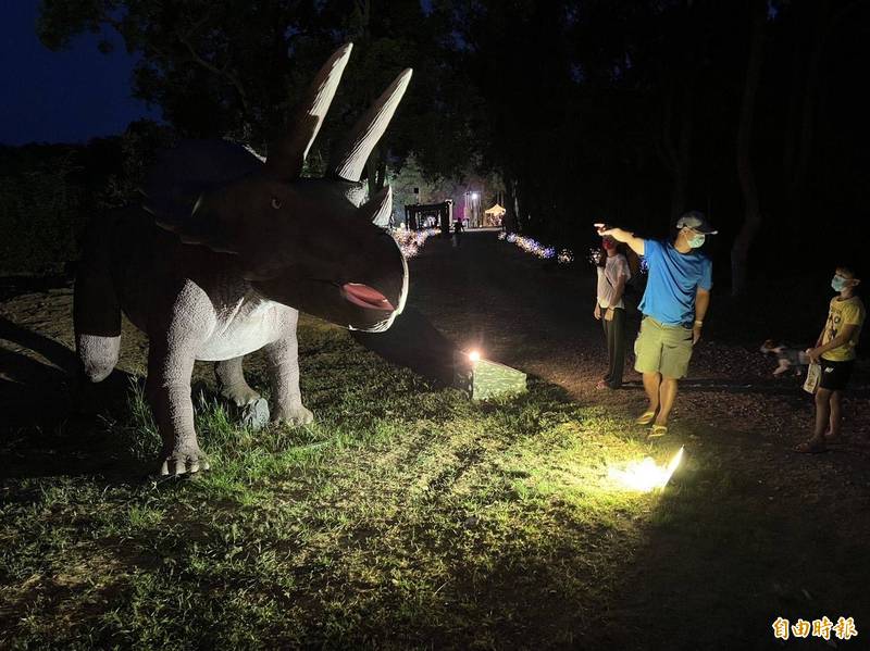 入夜後,會動又會叫的恐龍,在現場引起大小朋友注意。(記者吳正庭攝)