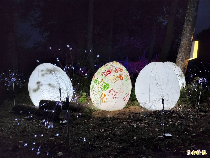 靜態的恐龍蛋展示,也在裝置藝術展中吸引不少遊客注目。(記者吳正庭攝)