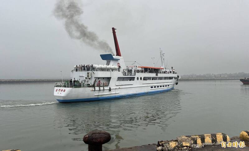 濃霧影響台金海、陸對外交通,縣府清明專船載著247名旅客由料羅港出發。(記者吳正庭攝)
