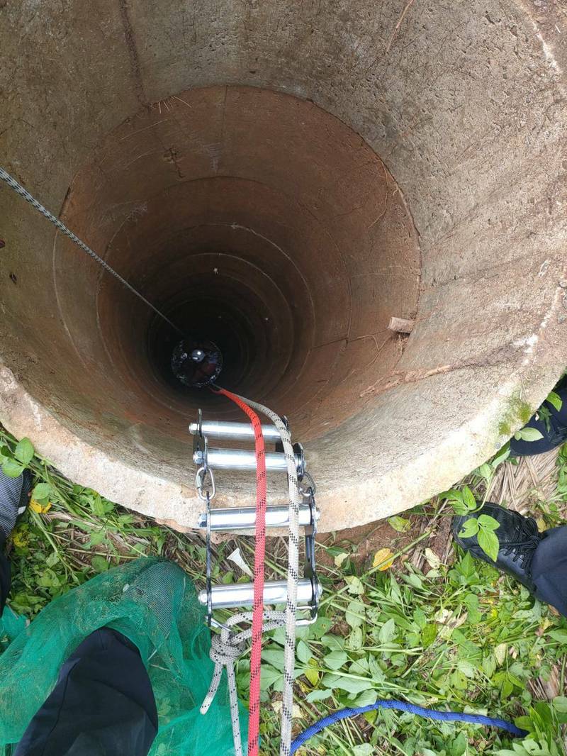 消防局人員得知現場為10米深古井,不敢大意,派遣2車、6人前往協助,發現一名51歲男子攤座古井深處,無法自行站立,消防人員便先架設繩索深入古井,發現男子雙腳骨折,痛苦不堪,便先簡單協助固定後吊掛離開古井。