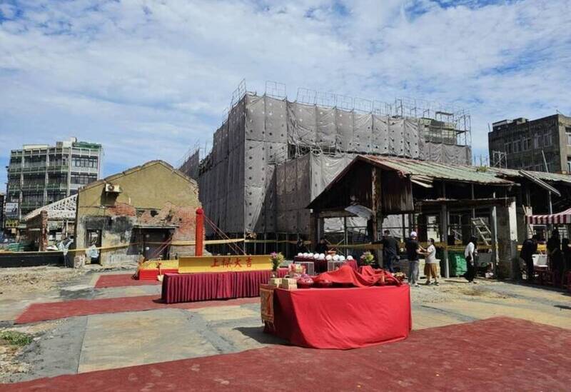 苗栗縣苑裡鎮公有零售市場辦理重建中;圖為今年5月舉辦上梁。(資料照)