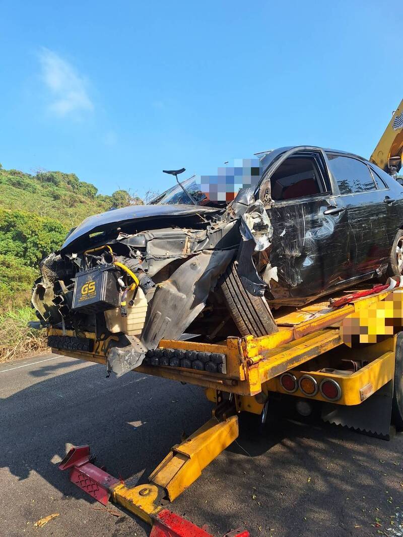 嬤載3孫賞櫻,車子失控撞向一旁樹林卡住嬤骨折。(民眾提供)