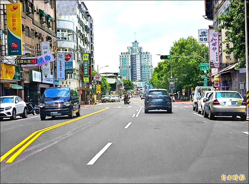 交通工務處表示,為公路改善路段,舊有規劃為雙向單車道,但過去於交通尖峰時段,路口左轉汽車容易造成回堵,因此在長安街、源林街、豐年路、為民街、嘉盛街、育英街及國華路七處路口,新增偏心左轉車道,設計廿至卅公尺長的左轉儲車空間,達到分流效果。改善工程也參酌市公所及地方人士意見,保留既有的收費停車格,新增約二.五公尺寬的人行空間,打造更友善的步行環境,兼顧行車與行人安全。