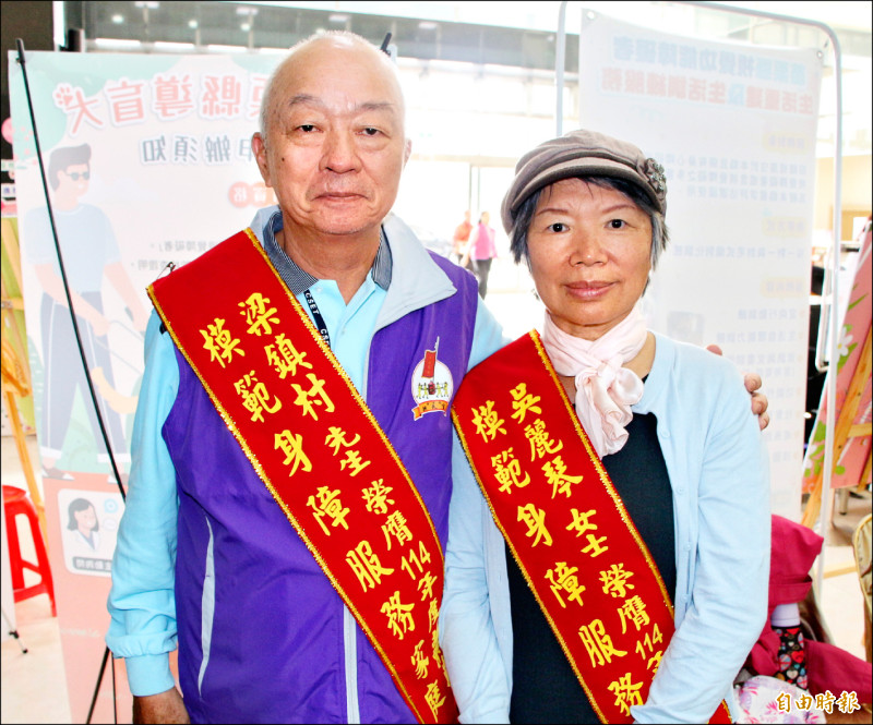 苗栗縣政府今年新增模範身障服務家庭,其中梁鎮村、吳麗琴夫妻投入身障服務志工31年,無怨無悔的付出。(記者張勳騰攝)