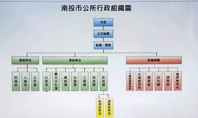 南投市公所現有10個課室行政組織架構情形。(記者謝介裕翻攝)
