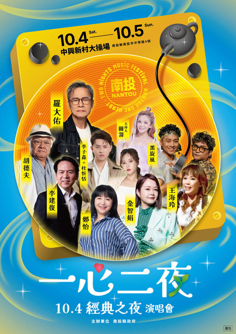 南投縣政府每年在茶博會舉辦的大型免費露天演唱會,都湧入爆滿民眾,場面不輸售票演唱會,今年再度推出「一心二夜」兩場演唱會,其中10月4日舉行的「經典之夜」演唱會大咖雲集,除由羅大帶來包括童年、戀曲1990等大家耳熟能詳的經典曲目,也邀請已少見公開演唱的知名民歌手李建復,以及鄭怡、王海玲、金智娟、甚至第一代民歌手胡德夫等人演出,還有新生代歌手李子森、杜忻恬及黑旋風輪番開唱,集結民歌、跨世代金曲等經典旋律再現,唱出滿滿的青春回憶。