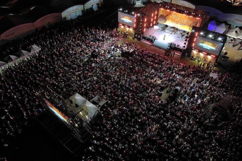 南投縣政府在去年茶業博覽會舉辦的民歌演唱會,湧進上萬民眾觀賞,盛況空前。(南投縣政府提供)