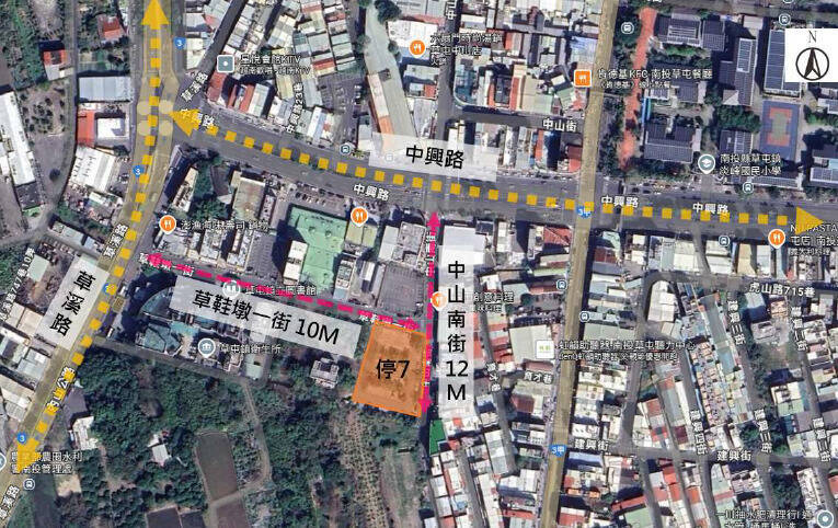 南投縣政府規劃利用草屯鎮公所東側活動中心旁的停7停車場,建置草屯先導交通轉運站。(南投縣政府提供)