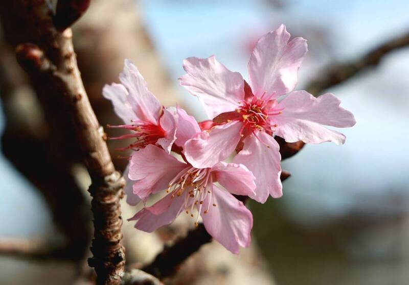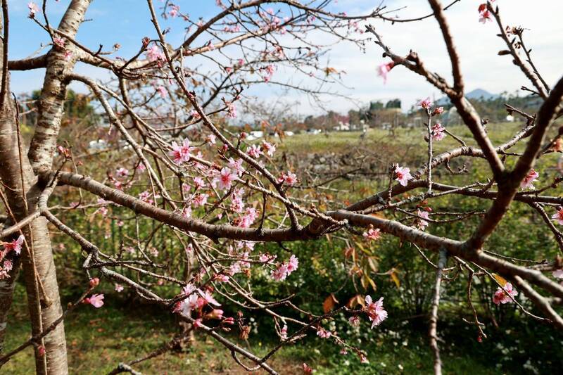南投小半天石馬公園河津櫻,目前零星綻放。(南投縣政府提供)