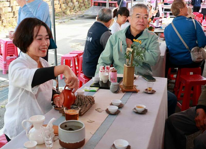 南投小半天櫻花冬筍季活動,安排茶席品茗體驗。(南投縣政府提供)