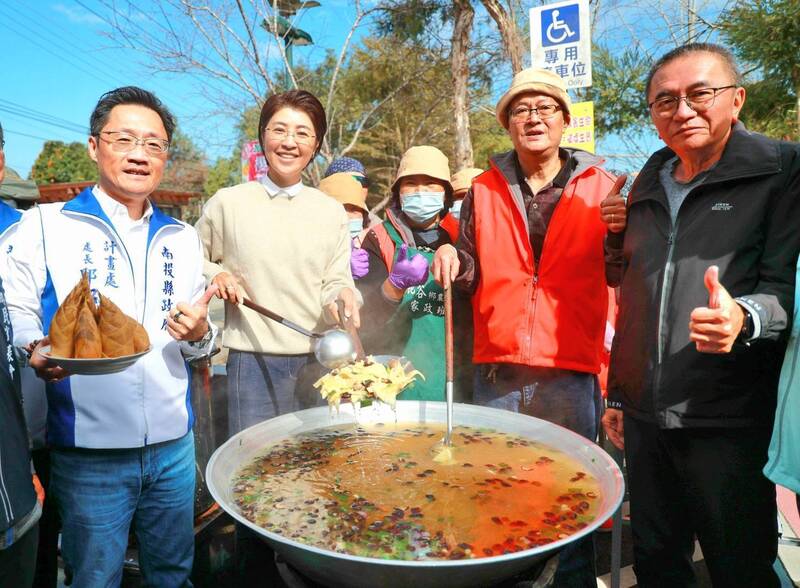 南投小半天櫻花冬筍季活動,烹煮鹿谷特產冬筍料理讓大家品嚐。(南投縣政府提供)