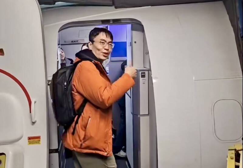 温世政進入機艙前,仍擔心航班會因大風雪延誤。(圖擷自温世政臉書)