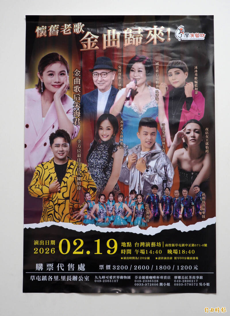 台灣演藝坊重新回歸,大年初三試營運,演出兩場歌廳秀,演出海報已出爐。(記者陳鳳麗攝)