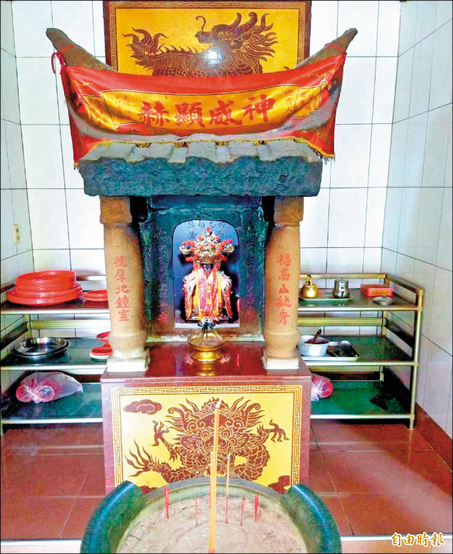 福壽宮供奉的是百年石頭土地公,且屋頂還有特殊的牛角設計。(記者謝介裕攝)