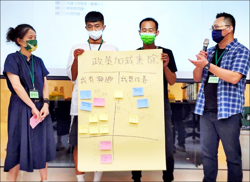參加青年培力營的在地年輕人,分組進行討論,並對政策以加減乘除方式,提出有興趣和希望改善的意見。(蔡培慧服務處提供)