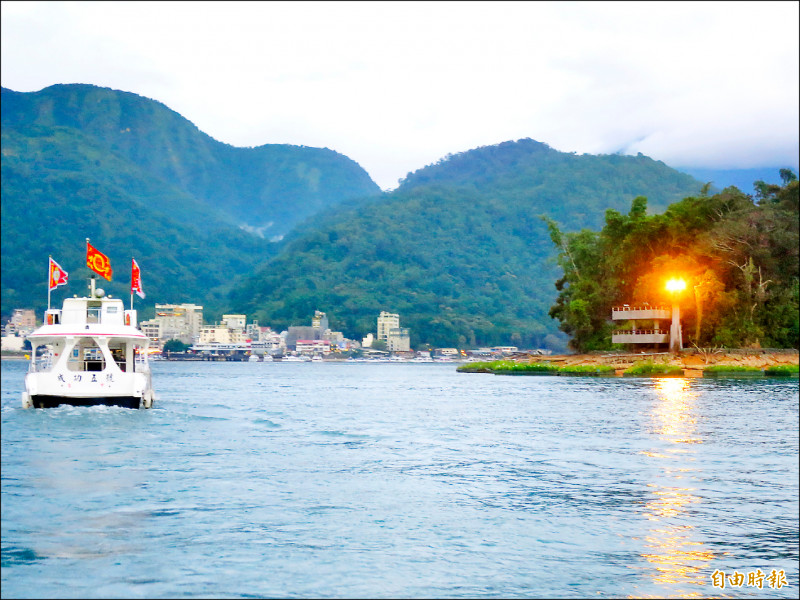 全國最高、最小燈塔「日月潭土亭仔燈塔」,冬季時節是船隻最重要的航行指引。(記者劉濱銓攝)