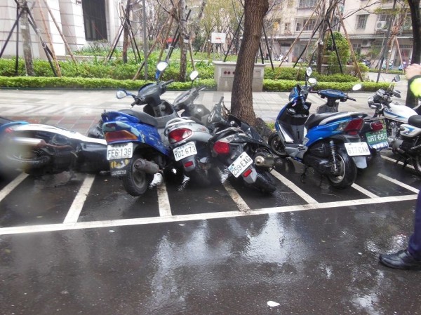路旁機車東倒西歪。(記者余衡翻攝)