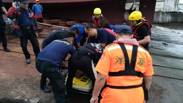 救護人員將落海的張男送往醫院急救。(記者吳昇儒翻攝)