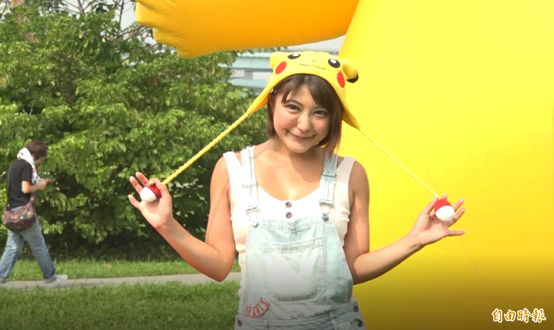 有日本模特兒,專程來到台灣參加寶可夢活動,成為另外吸睛的焦點。(記者胡姿霞攝)