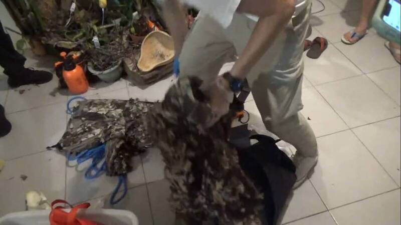 「遊艇大亨」張志傑犯下性侵案被判刑9年、卻畏罪潛逃,警方到他的藏身處搜索,意外發現還有一套用來野外偽裝的「吉利服」。(記者王冠仁翻攝)