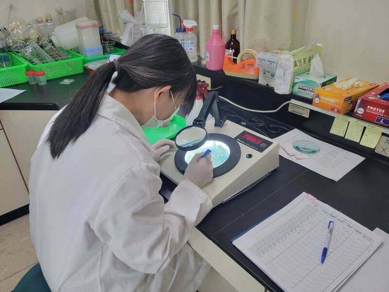 新北市環保局免費檢驗井水、山泉水等非自來水水質,技術人員使用儀器精密度檢驗細菌類指標。(新北環保局提供)