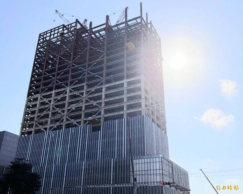 位於三重的新北第二行政大樓正在施工,預計年底上梁。(記者賴筱桐攝)