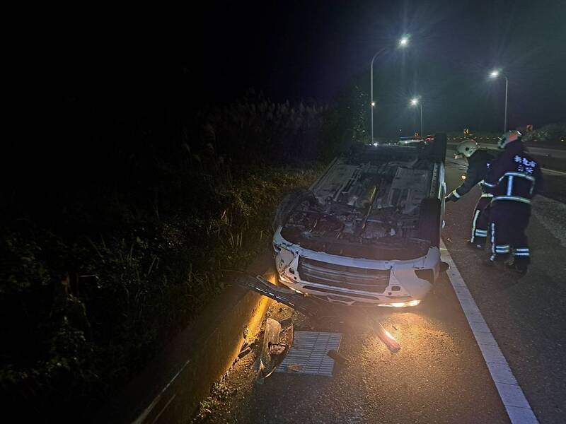 新北萬里彎道自撞翻車4輪朝天 駕駛幸僅受輕傷